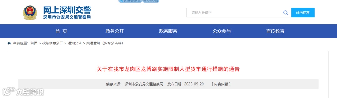 为缓解我市部分道路的交通压力,进一步改善道路通行环境,根据《中华人民共和国道路交通安全法》第三十九条、《深圳经济特区道路交通安全管理条例》第七十七条之规定,我局决定对龙岗区龙博路实施限制大型货车通行的交通管理措施,具体通告如下: