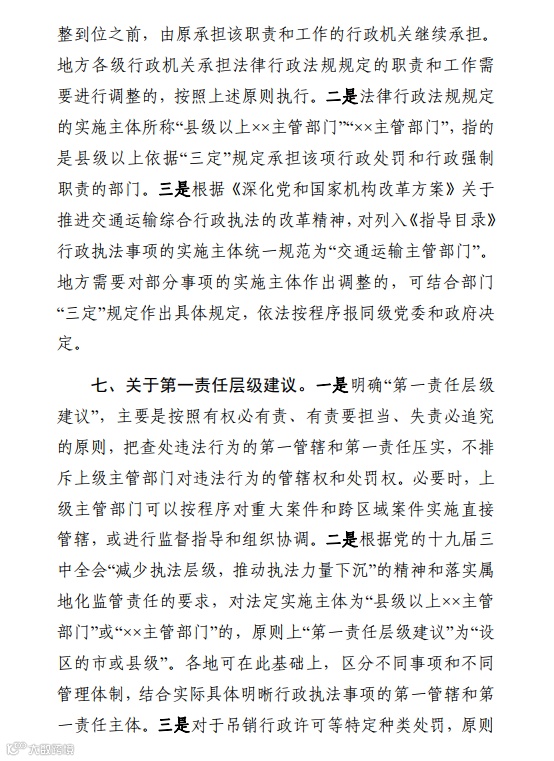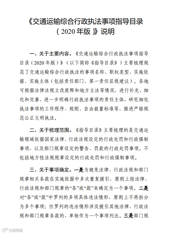 《交通运输综合行政执法事项指导目录(2020年版)》说明