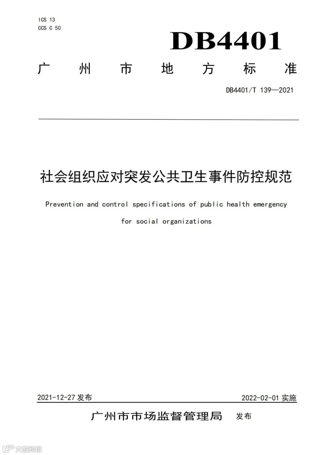 广州市地方标准《社会组织应对突发公共卫生事件防控规范》全文发布