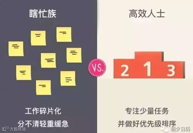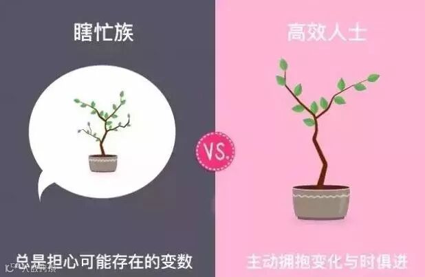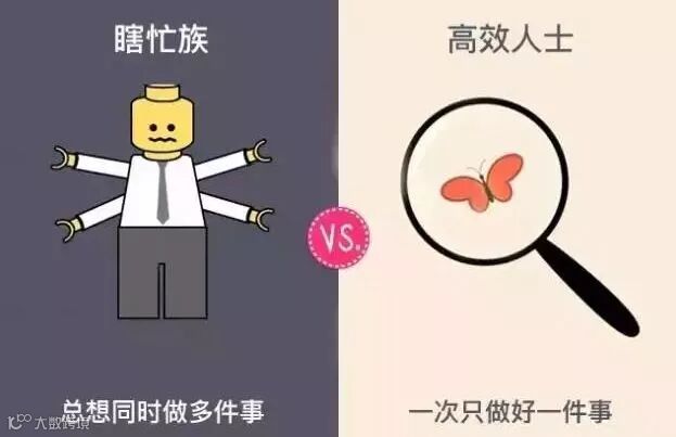 瞎忙族和高效人士的时间都安排得很满,但是却有本质的区别。瞎忙族是没有目标和方向的忙碌,整天被外部力量推着赶着,永远有忙不完的活,永远在救火,但是却说不上来忙了些啥,为了啥。