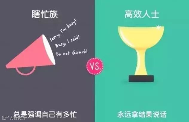瞎忙族的口头禅是“我很忙”“ 我没时间”,经常发朋友圈晒加班,把忙碌当成炫耀的资本,殊不知恰恰暴露自己的效率低下。