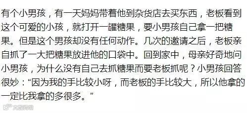 这个故事告诫我们,局限思考是从自己的角度思考,整体思考是你把自己放到整个环境中去考虑。系统地思考问题,就会发现,你的行为会对别人产生互动。