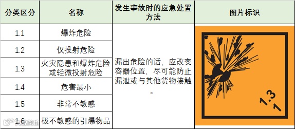 爆炸物的材料或物品,产生化学反应能迅速燃烧或爆炸。此物品涵盖了用于爆炸、火灾危险作用的物质,以及含有炸药和爆破剂的装置。此外,这一类包括物质和产品,存在非常大的危害性,由于他们的大规模爆炸危险(能力的爆炸瞬间对所有货运),往往产生“散射”。