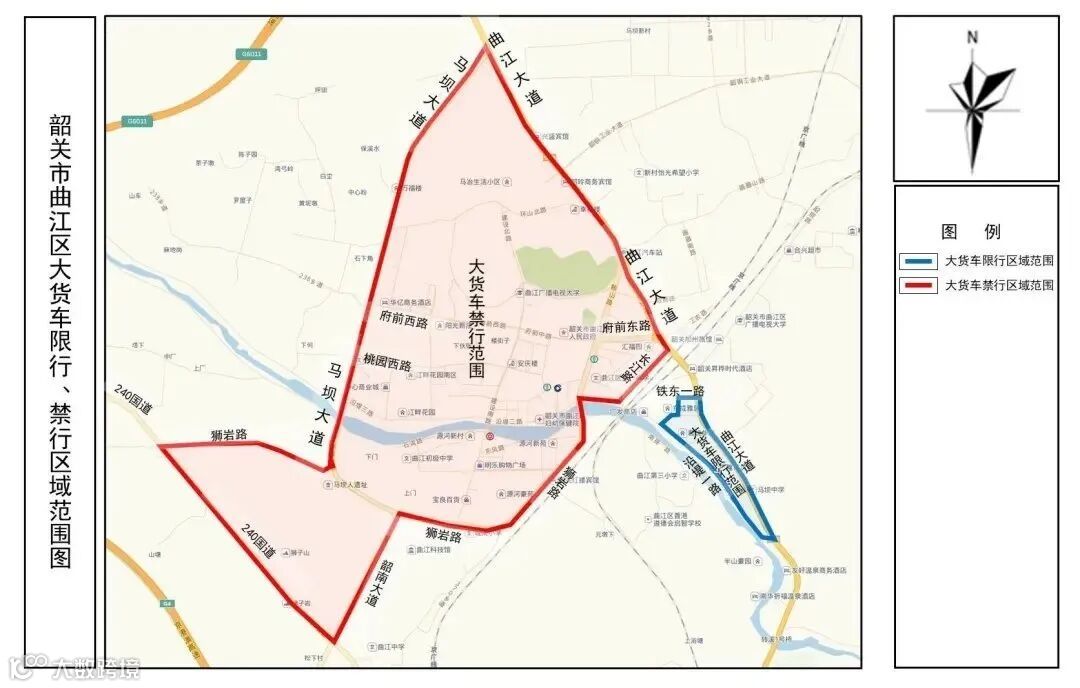 浈江区、武江区大货车限行、禁行区域范围图