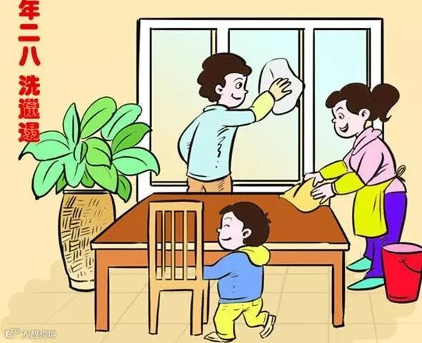 民谚称“腊月二十四,掸尘扫房子”。举行过祭灶后,便正式地开始做迎接过年的准备。扫尘就是年终大扫除,北方称“扫房”,南方叫“掸尘”。在春节前扫尘,是中国人民素有的传统习惯。每逢春节来临,家家户户都要打扫环境,清洗各种器具,拆洗被褥窗帘,洒扫六闾庭院,掸拂尘垢蛛网,疏浚明渠暗沟。大江南北,到处洋溢着欢欢喜喜搞卫生、干干净净迎新春的气氛。