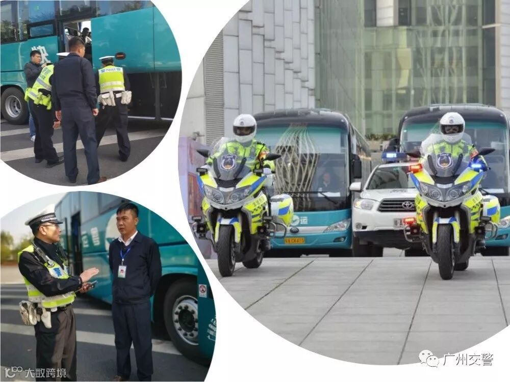 ☝广州交警组织安排检查、护送2辆春运大巴车