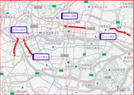 预计节日期间市区易发生拥堵缓行的路段有工业大道北、花地大道北、黄埔大道西、中山大道中等。