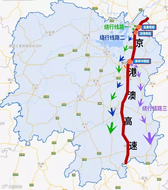 3.G4京港澳高速杨梓冲枢纽转G0401绕城高速转S20长浏高速转G0422武深(平汝)高速南下。