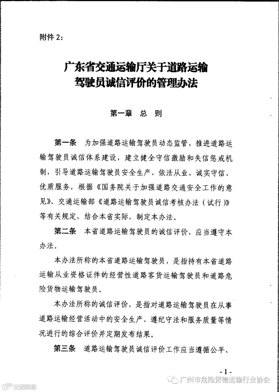 导读:《广东省交通运输厅关于道路运输驾驶员诚信评价的管理办法》