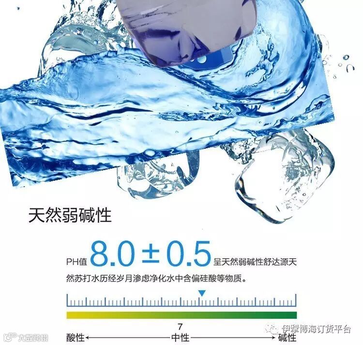 苏打水目前世界上最受推崇的水,水中含有重碳酸根和钠,弱碱性有效调节人体酸性体质,提高免疫力。水分子团小,可快速补充细胞水分,加强吸收和代谢,改善体质,预防疾病。