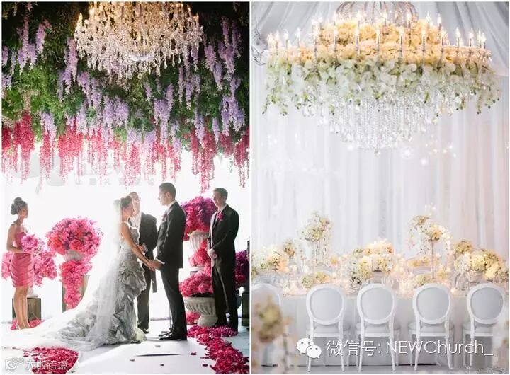 天花板上装饰精美的花朵,在绚烂灯光的映射下,一定会震撼你的客人。