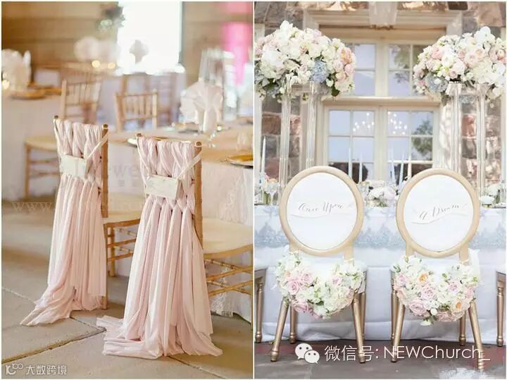 椅背装饰是一个重要的但经常被忽视的元素。简单的褶边,花边或花环装饰都会产生令人难以置信的效果。动动手让婚礼上的椅子变得活泼优雅吧!