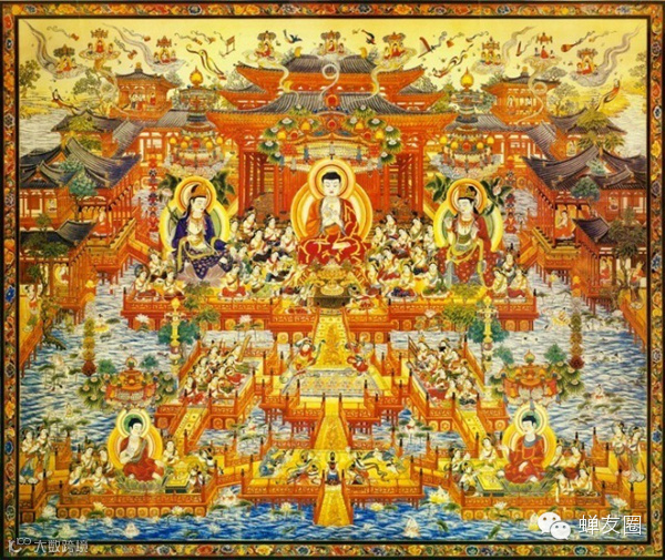 天堂是宗教的标配。甚至可以这么说,无天堂不成宗教。原始佛教时代,佛陀及诸弟子注重的是类哲学的思考,后来分化出大乘佛教,为了将自觉觉他、自度度人落到实处,“天堂”就适时出现了。当然,大乘佛教的天堂不叫天堂,叫“西方极乐世界”,极乐世界里面有一佛,就是阿弥陀佛。为什么叫极乐世界呢?“其国众生。无有众苦。但受诸乐。故名极乐。”你今生今世受苦,只要诚心念佛,行善积德,死后就会被接引到极乐世界享受极乐。