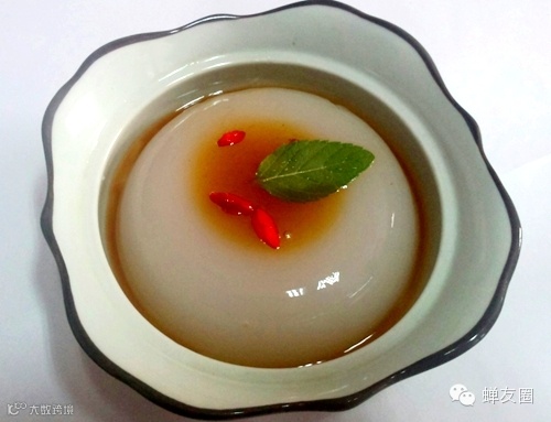 3.成透明果冰时取出加入枸杞子与野生蜂蜜即可。