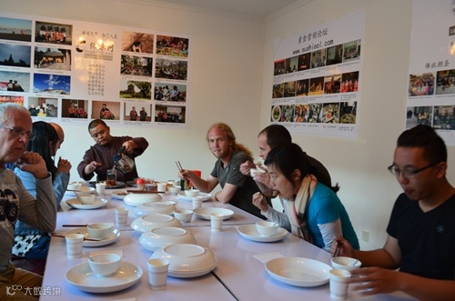 图片:拉萨蝉友圈生活馆 与荷兰团友共聚一会,品尝纯正的酥油茶、糌粑。