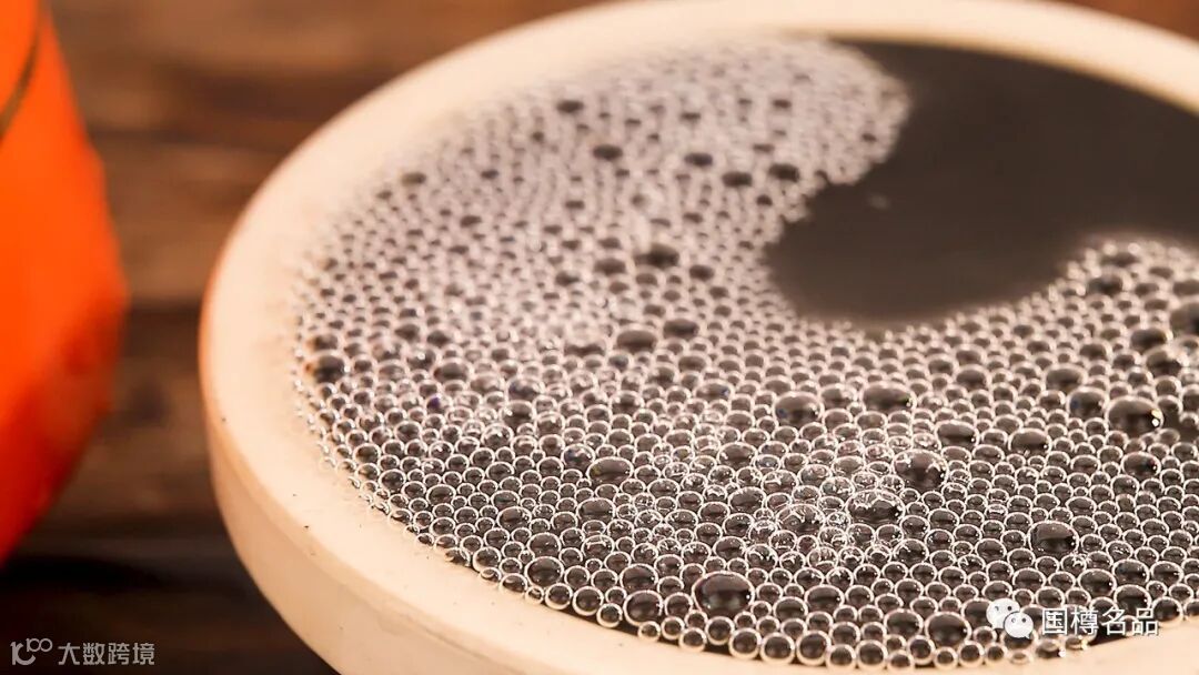 将酒倒杯中香气扑鼻,酒质清澈,酒线绵柔而不断,酒花均匀饱满。探鼻细细一闻,一股浓郁绵甜的窖香味扑鼻而来,窖香伴有淡淡的酱味,且香气协调,产生愉悦之感。