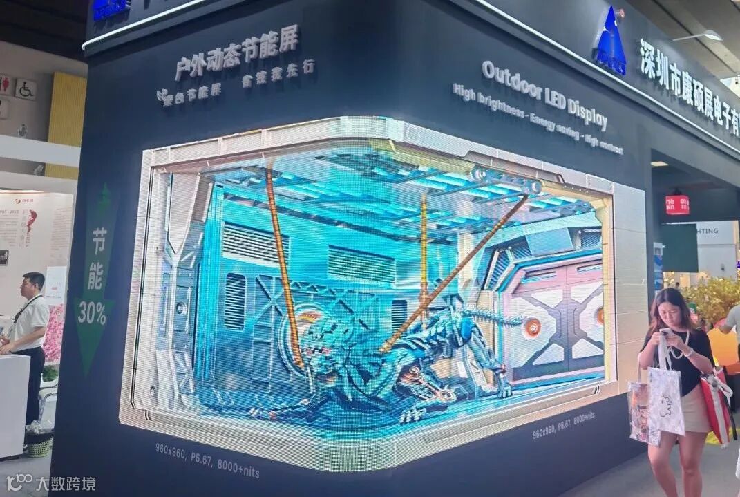 来到户外展区,户外节能屏采用了先进的 “动态” 节能技术,通过智能电力管理系统,精准分配驱动电压,有效避免多余电压损耗,大幅降低功耗。与传统户外显示屏相比,其能耗降低了30%以上。