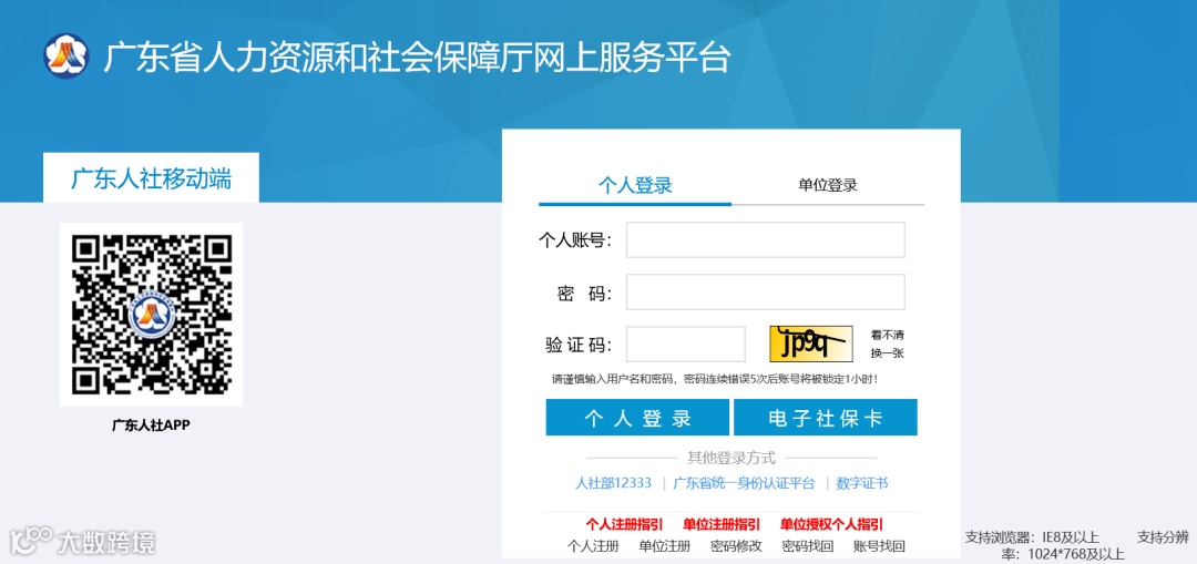 ①登陆广东省人力资源和社会保障网上服务平台