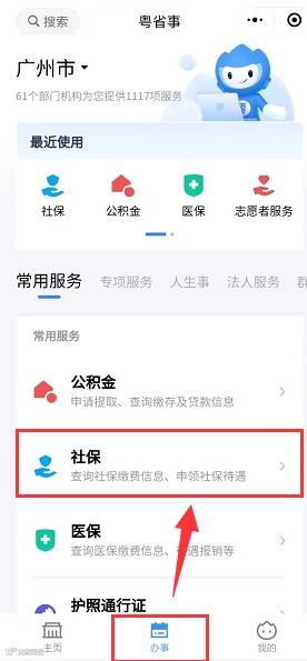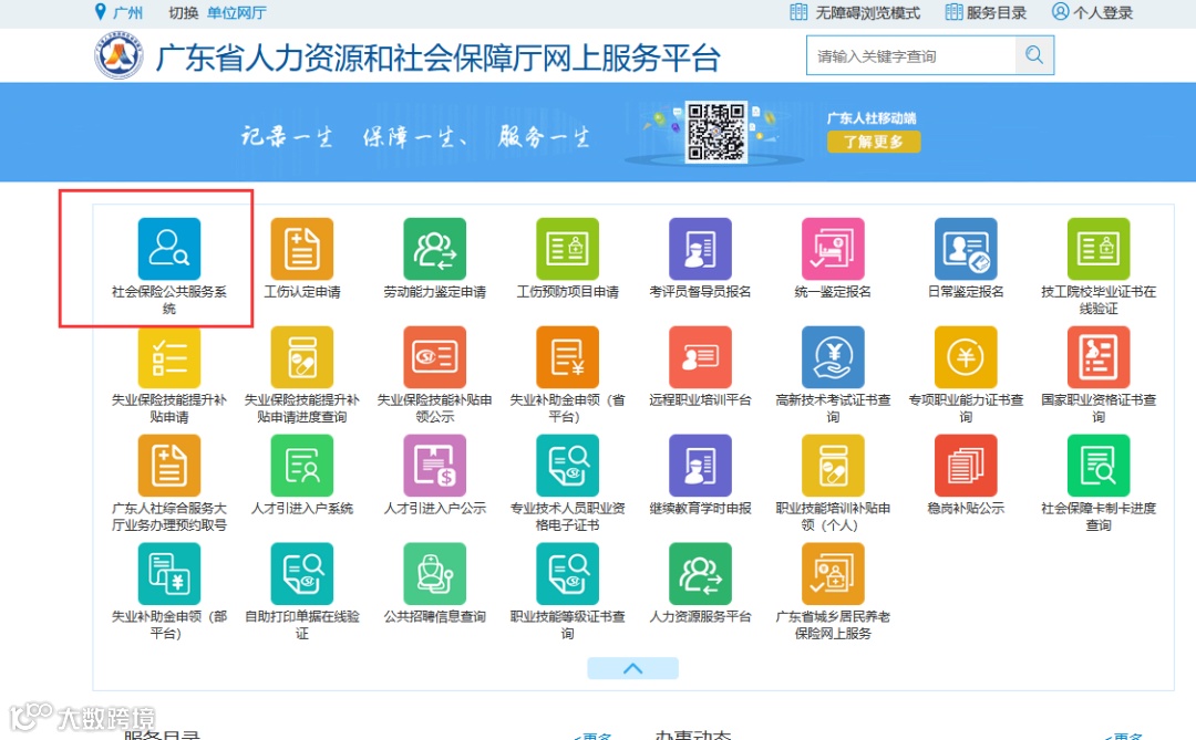 网址:https://ggfw.gdhrss.gov.cn/gdggfw/index.shtml,进入社会保险公共服务系统