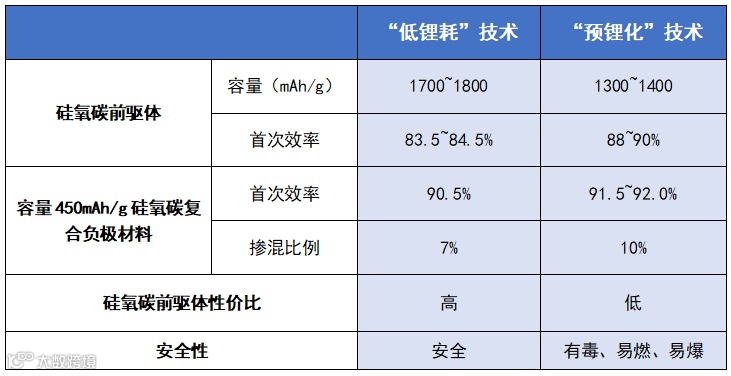 (1)硅氧碳负极(SiO@C)采用控制含氧量、优化结构形貌形成稳定的SEI膜为基础的“低锂耗”技术,结合碳包覆提升电子电导率、稳定化学/电化学反应界面、提升材料的结构稳定性,从而达到高首效、长循环的目的,该技术比“预锂化”技术更安全,更易加工,储存更方便,且成本更低。
