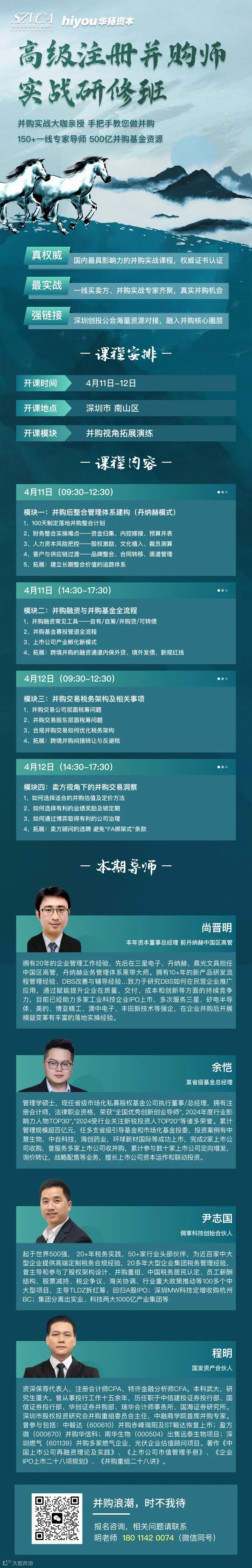 加入注册并购师,锁定终生成长席位!更多《高级注册并购师实战研修班》相关内容,可扫一扫下方二维码,添加教务老师微信咨询或致电【180 1142 0074】微信同号。