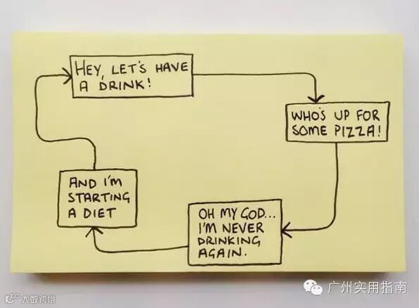7.另一个恶性循环:来喝点酒吧→应该配点比萨→我再也不敢喝那么醉了→我吐得好不舒服→来喝点酒吧....