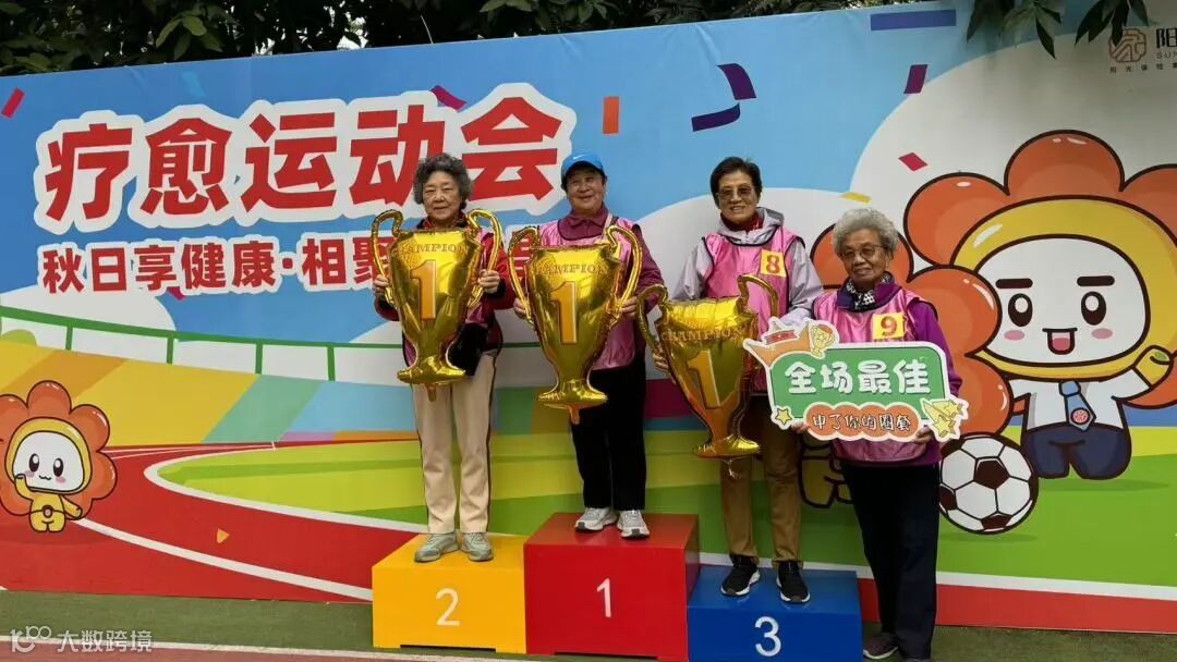 在深秋暖阳下,阳光儿女带领长者们开展“疗愈运动会”的主题户外活动,长者们乐在其中,画面十分温馨。