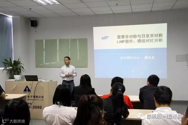 今天上午10点,非常荣幸邀请到雷曼总部技术研究中心的屠孟龙总监,携《雷曼非对称直插Lamp器件及相关模组的技术分析和同行优势对比》,为康硕展的员工上了一堂生动的培训课程。