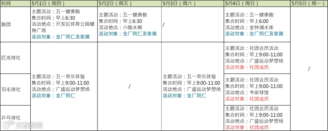 活动时间:五一假期(具体时间群内通知)