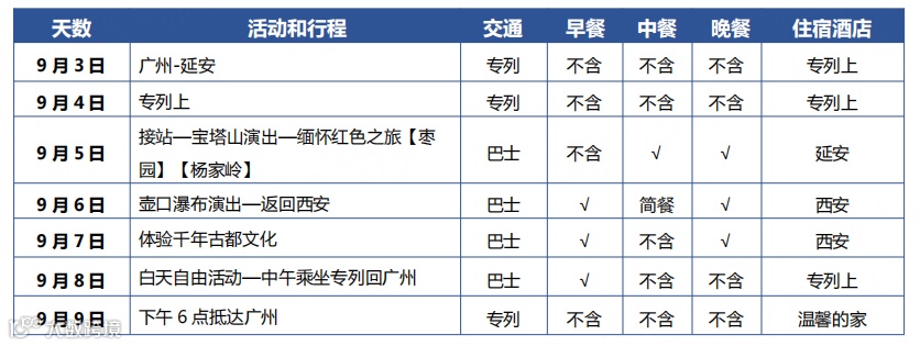 9月3日-9月9日(因专列编排,出发时间前后略有改动)。