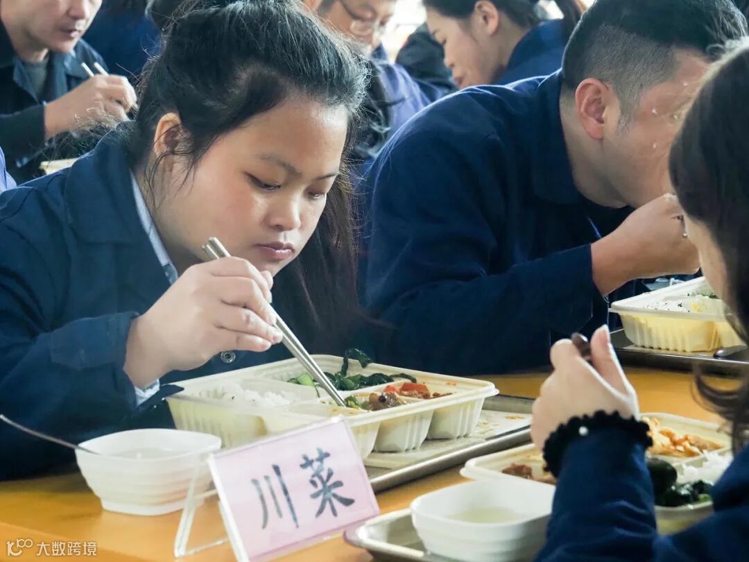 “红烧排骨、卤鸭、猪头肉、脆香骨……”待寿星们坐定后,美味又饱含心意的粤菜和川菜餐盘开始端上餐桌,让人忍不住大快朵颐。在就餐过程中,大家相互说着祝福的话,一同感受着广盛大家庭的温暖。