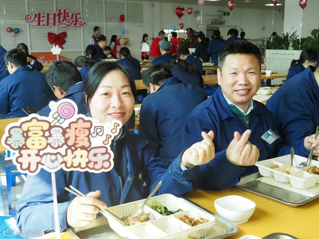 “和所有的烦恼说拜拜,和所有的快乐说嗨嗨……”1月10日中午,熟悉的音乐声和阵阵欢笑声从广盛员工食堂传出。为了让寿星们能有一个难忘的时刻,也能感受到公司的温暖,福委会精心为寿星们营造了一个氛围感十足的会场。充满生日气氛的背景板、绿化盆栽、生日餐盘图案,氛围感拉满~