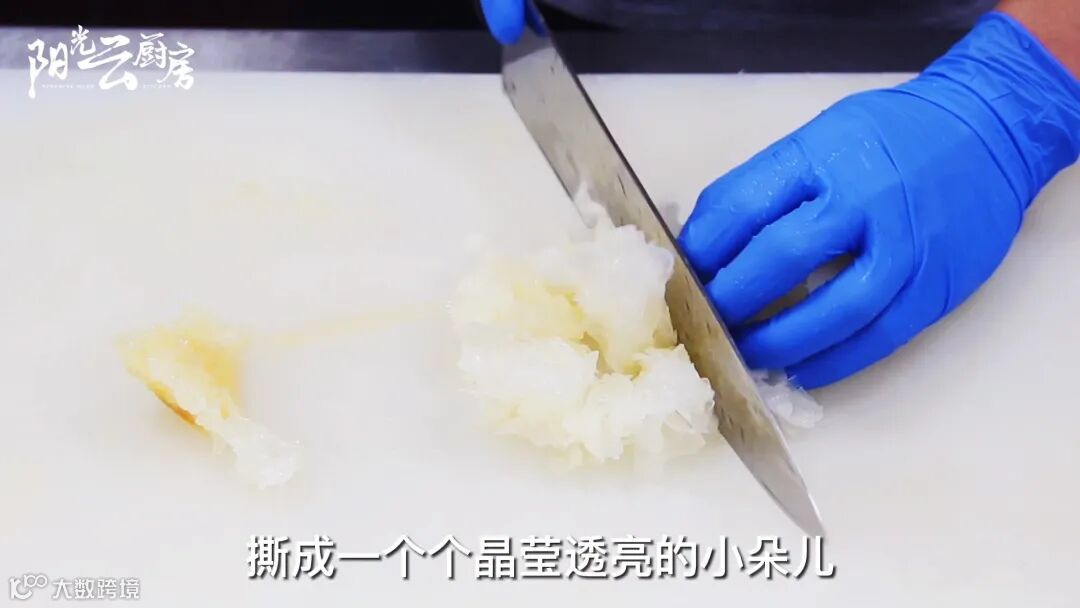 去蒂,撕成一个个晶莹透亮的小朵儿
