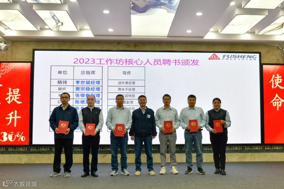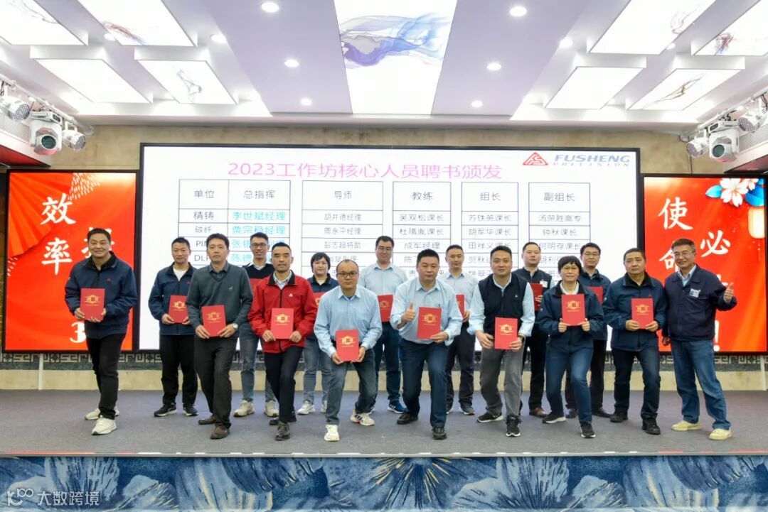 2023年精益自主研,是对于近2年精益工作坊的成果检验,通过前2年的精益工作坊培育了一大批优秀精益黑带和绿带,按照职责划分为导师,教练和组长,加上来自于各个部门的黄带,组建了幕僚与制造混编的课题小组。为了强化课题改善核心团队的责任,由标准推进中心尤文瑞协理为2023年工作坊核心人员颁发聘书。