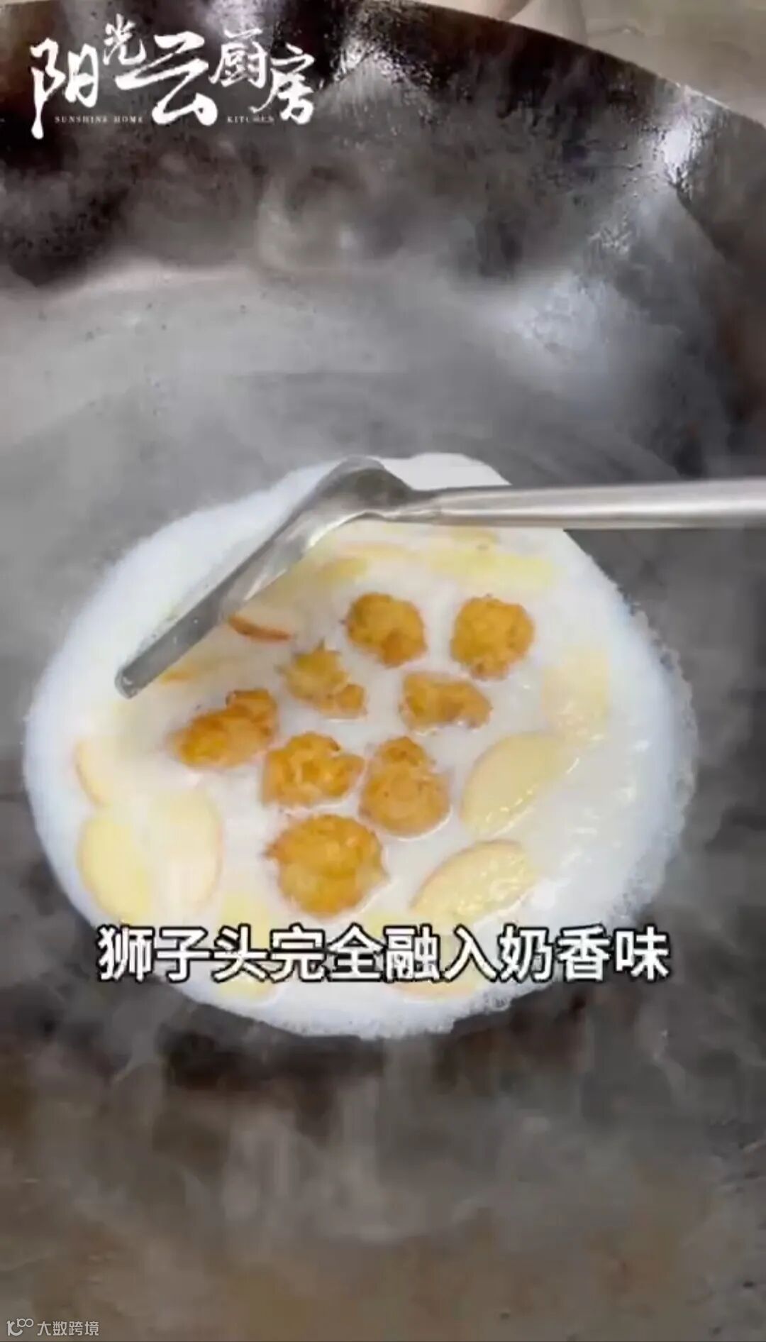 将炸好的狮子头放入奶汤中煮1~2分钟后可以出锅了