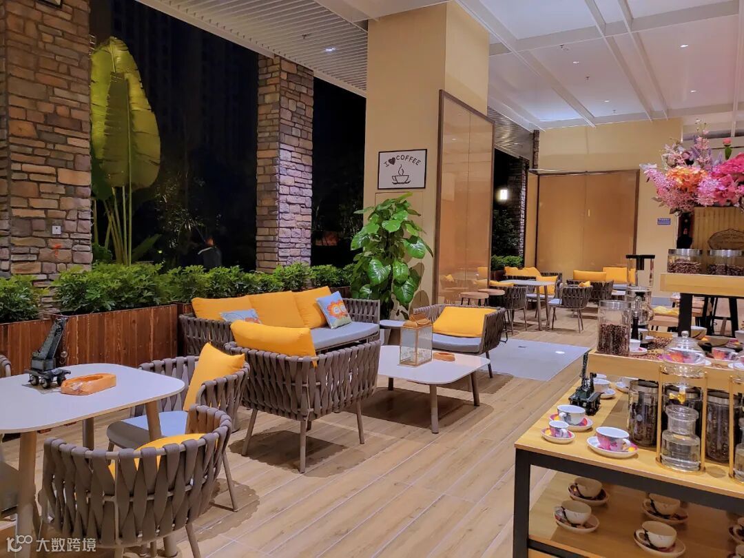 白天,冬日的暖暖阳光,穿过托斯卡纳建筑的拱顶连廊,洒落在咖啡吧的桌椅之间,让人不由自主就想从室内走出来,在舒服的户外沙发上,享受一杯特调咖啡,或者是养生花茶,感受阳光的温柔眷顾。