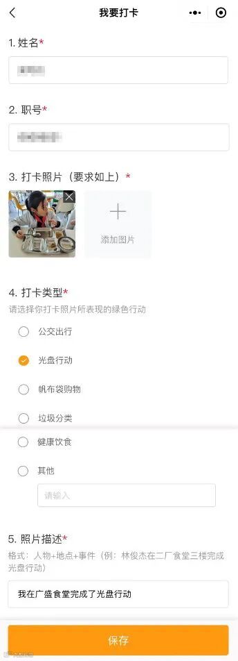 4、填写照片描述(例如:我在广盛食堂完成了光盘行动)