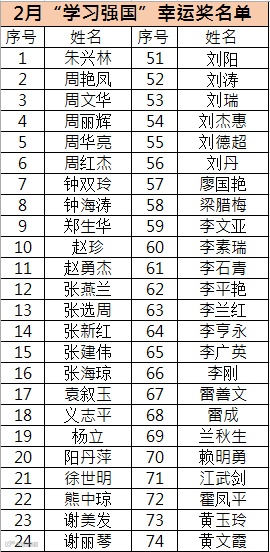 新一期【学习强国】中奖名单公布