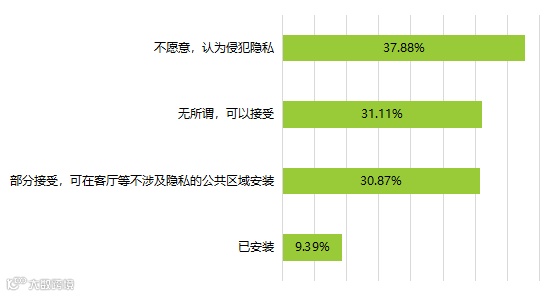近四成老人不愿子女安装监控。37.88%的老人不愿子女安装监控,认为这样侵犯其隐私;30.87%的老人表示部分接受,可在不涉及隐私的公共区域安装。