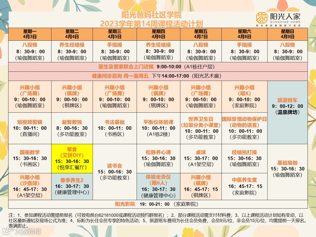 2、部分课程活动有人数限制,建议至少提前三天报名并确认哟;