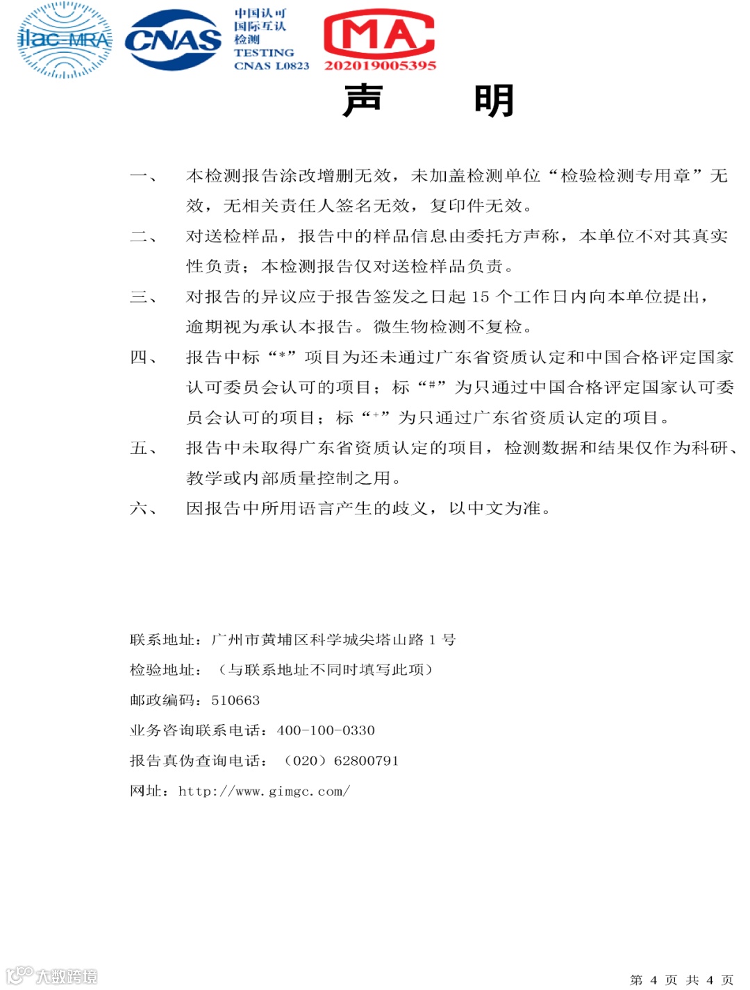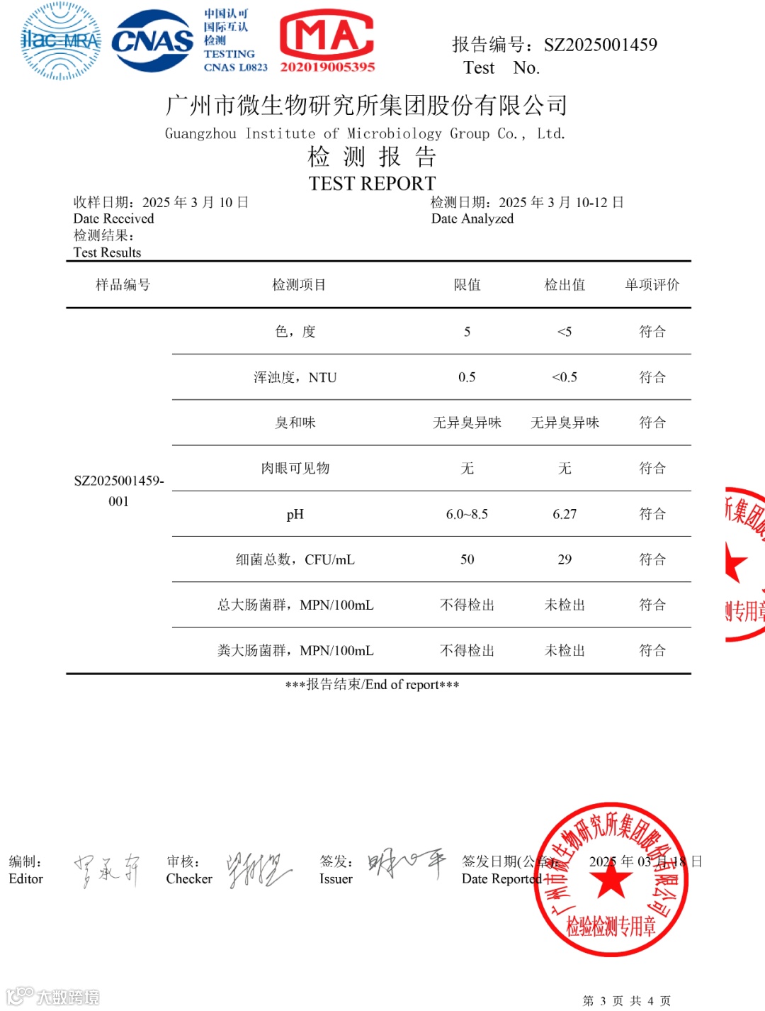水质检测报告公示