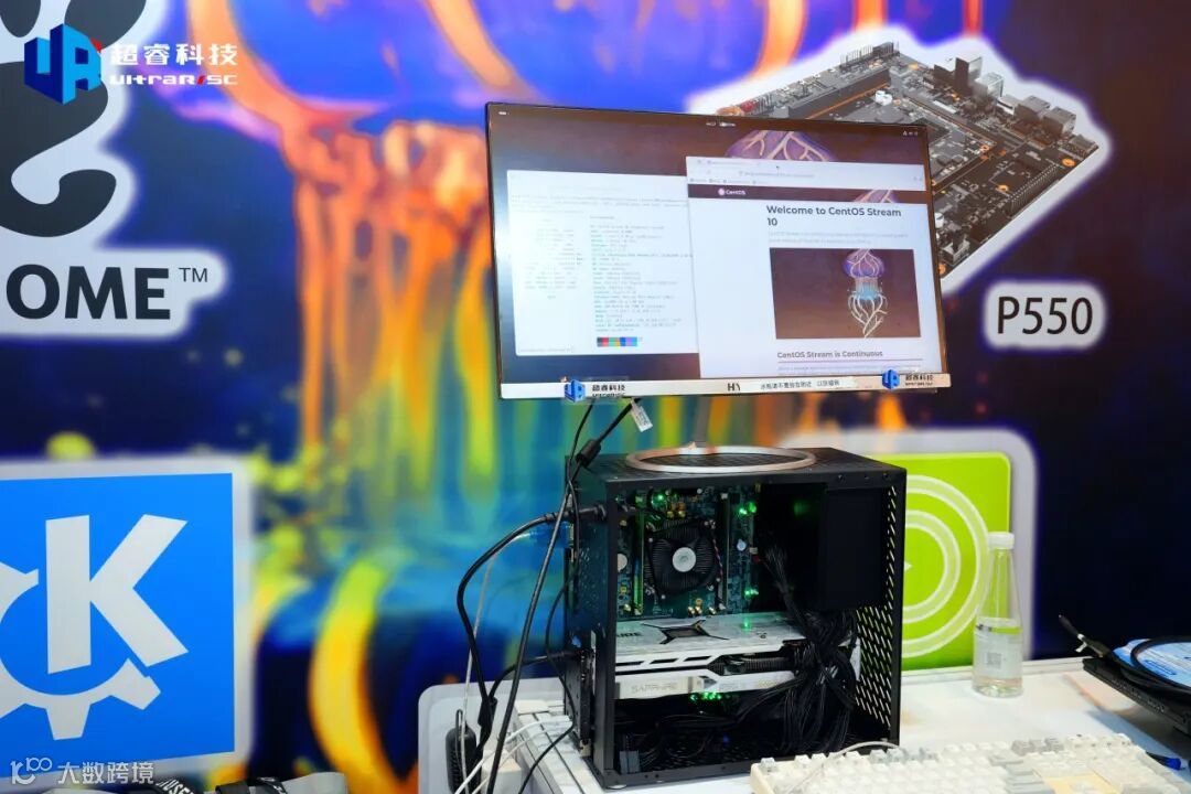 技术团队现场演示了在UR-DP1000开发板上基于unbuntu操作系统运行的典型桌面应用、Qwen大模型高性能推理、VR游戏、高性能六屏合并显示等,流畅的体验和高度的可用性引发观众惊叹。同时现场展示了与UR-DP1000完成适配的鸿蒙、开放欧拉等操作系统,以及完成适配的多种渲染和加速卡的整机系统。