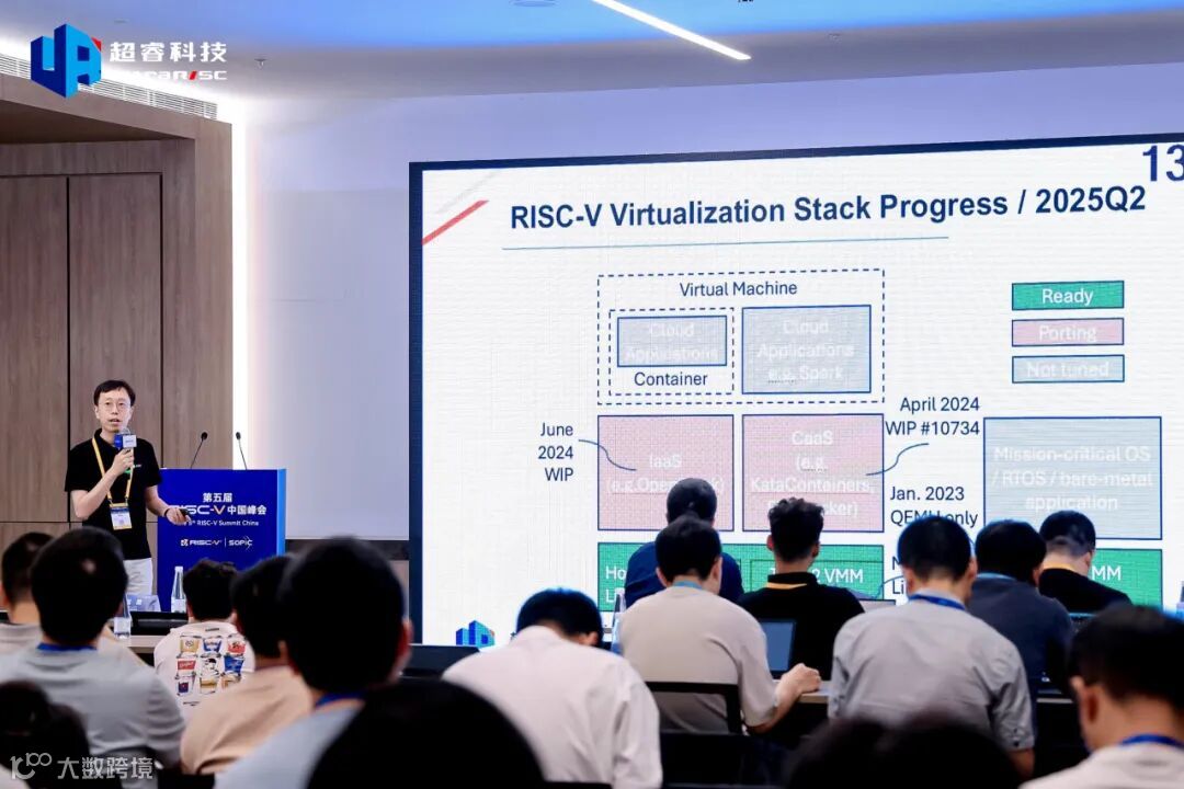 同日下午,公司软件总监夏鸣远在“软件与生态系统分论坛”带来《A Standard-compliant High Performance RISC-V Desktop Virtualization Platform》技术演讲。