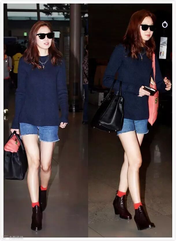 孔欧尼这一身颜色都很低调,全身的亮点都集中在了那双酒红短靴和橘红短袜上,尤其是那双短袜,神来之笔啊,这“搭配心机”,不愧是韩国最会穿的女人!
