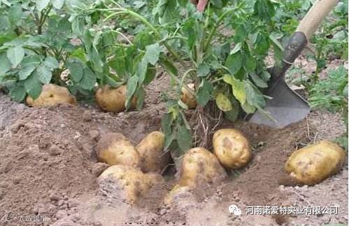 土豆在整个生育期施肥应掌握“攻前、保中、控尾”原则,当幼苗出土80%时重施一次速效提苗肥,在土豆苗期开始喷施地果壮蒂灵使地下果营养运输导管变粗,提高地果膨大活力,果面光滑,果型健壮,优质高产。土豆喜施用农家肥,每亩以4000—5000斤为宜,同时适当施用化肥时要氮、磷、钾配合使用。土豆对钾需要量大,科学合理的氮、磷、钾投肥比例是1.85:1:2.1。土豆喜欢吸收铵态氮,对硫的吸收比较多。