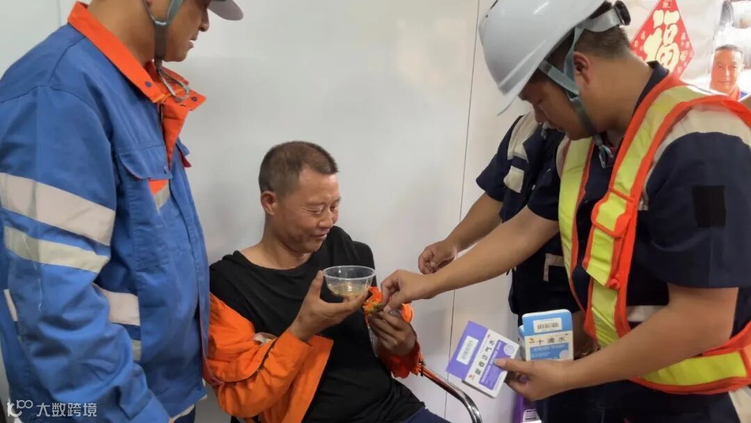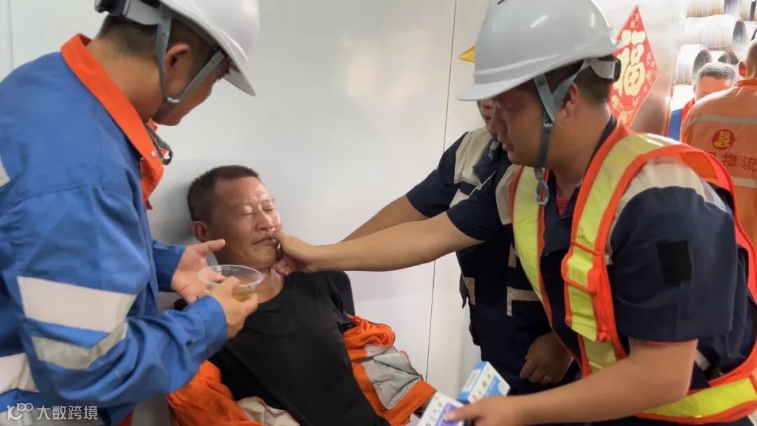 此次演练模拟了海福物流班组工人在作业过程中中暑晕倒,经现场工友发现后,立即通知班组队长,队长接到险情后迅速启动应急预案,召集人员赶往事发位置,将中暑人员转移至安全地带,经过人工物理降温、喂服降暑药品等紧急处置,现场中暑人员逐步恢复意识,脱离危险,并通知救护车送往就近医院接受救治的全过程。