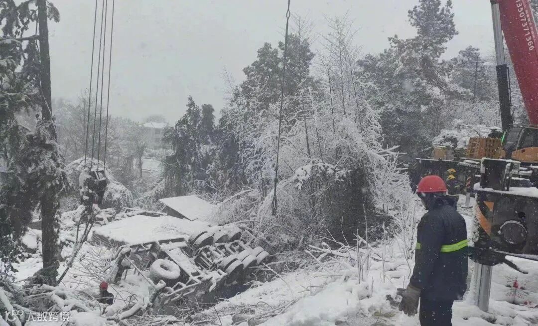 据了解,因降雪导致路面结冰湿滑,加之驾驶员操作不当,导致车辆发生侧滑,掉入路边水沟被困。由于被困车体过大,路面积雪结冰严重,救援难度较大。经过9小时的共同努力,被困车辆终于在下午5时成功脱险。小编提醒:驾驶员们注意冬季安全行车,下雪天气路面容易结冰打滑,行车请以“稳”为主,车辆在行驶过程中务必控制车速,经过路口前需要提前采取措施,防止车辆发生'刹不住'现象。