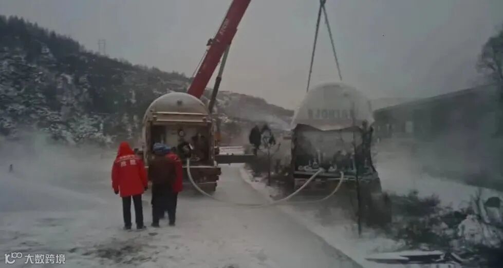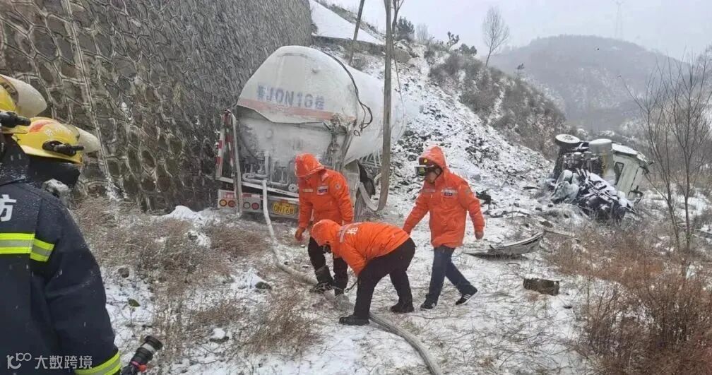 事件:1月18日,吕梁临县滨榆线郝家岔村附近,一辆载有21吨LNG的罐车坠落12米高的河谷,车头与罐车连接托盘撕裂,车挂分离,车头折叠变形,挂车倾翻。