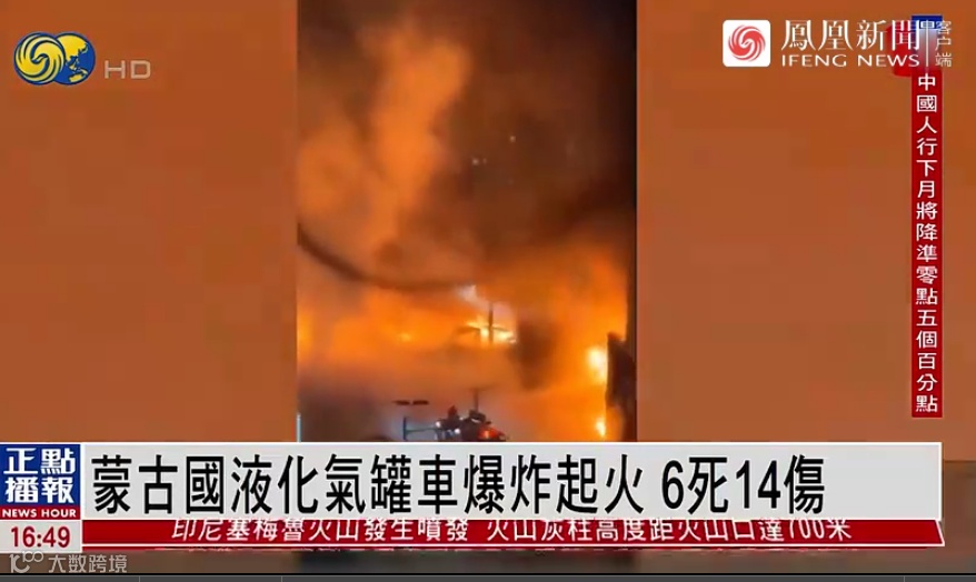 蒙古国一油罐车爆炸引发大火致6死14伤