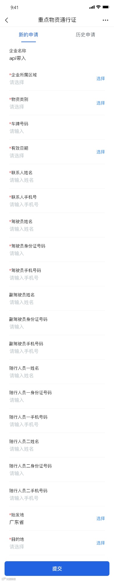 ● 在新的申请页面中填写如下信息,其中收发货企业名称通过粤商通获取(建议通过粤商通关联法人或者指定办理人信息,详细方式咨询粤商通客服)。